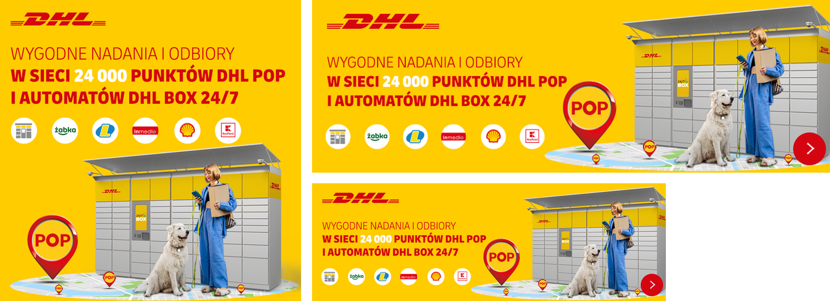 • Logo DHL można wykorzystywać na kreacjach - banerach, postach społecznościowych, w mailingach, animacjach i filmach.